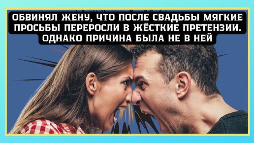 Обвинял жену, что после свадьбы мягкие просьбы переросли в жёсткие претензии. Однако причина была не в ней
