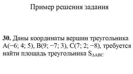 Даны вершины треугольника A(−6; 4; 5), B(9; −7; 3), C(7; 2; −8), найти площадь треугольника SΔABC