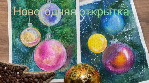 Новогодняя открытка акварелью.