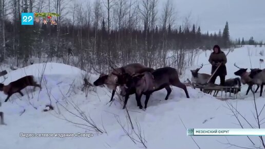 2,5 тысячи оленей перешли автодорогу Мезень - Архангельск. И все под контролем сотрудников ГИБДД.