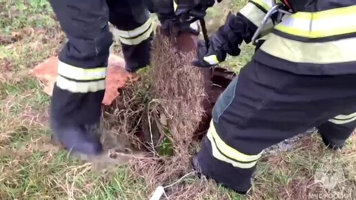 В Северной Осетии спасатели извлекли из люка провалившихся туда щенков. Мама-собака сидела у люка и громким лаем звала на помощь людей