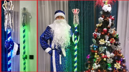 ПОСОХ ДЕДА МОРОЗА с подсветкой. Своими руками. Подробное видео.