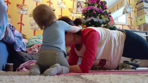 Худею к Новому году:первая планка после родов. Тренировка с личным "тренером")