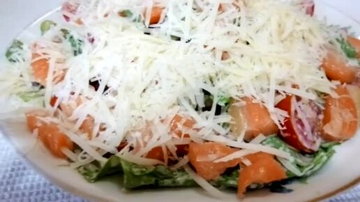 САЛАТ С КОПЧЕНОЙ СЕМГОЙ И ОРИГИНАЛЬНЫМ СОУСОМ