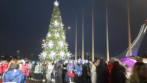 На медальной площади федеральной территории Сириус зажгли огни на новогодней елке, посвященной Всемирному фестивалю молодежи