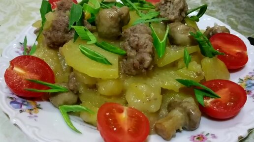 ЖАРЕНАЯ КАРТОШКА С ГРИБАМИ И ФАРШЕМ. СЫТНЫЙ ОБЕД НА СКОРУЮ РУКУ