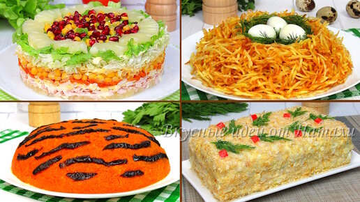 4 вкусных САЛАТА на Новый Год 2024. Красивые и Вкусные Новогодние салаты 2024 / Праздничные салаты