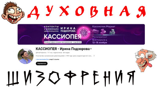 Духовная шизофрения на канале "КАССИОПЕЯ - Ирина Подзорова"