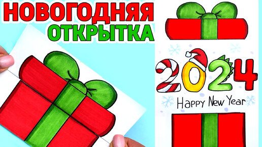 СУПЕР КРУТАЯ ОТКРЫТКА на Новый Год 2024 | Как сделать новогоднюю открытку 2024 | Рисунки Юльки DIY