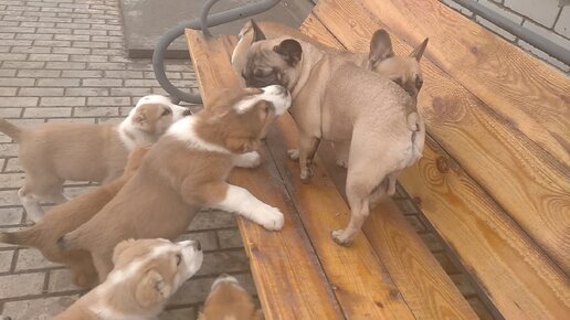 Тихо рассказываю о наших буднях. Щенки быстро перецветают в рыжиков, растут. Бульдоги спасаются на качелях