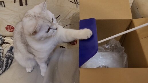 Кошечке досталась коробка от чайника. Что будем делать с ней?