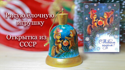 Рисую ёлочную игрушку "Белочки". Сюжет из советской открытки "С новым годом".