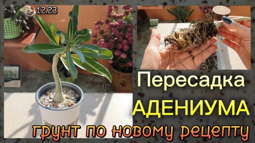 Пересадка сеянца Адениума. Мой новый грунт для Адениумов. И немного цветочков