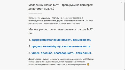 Далее: Слушайте в дороге: Модальный глагол MAY – тренируем на примерах до автоматизма. ч.3