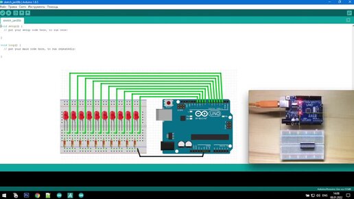 #Arduino 09 - Управление номером пина при помощи переменной Бегущий огонёк