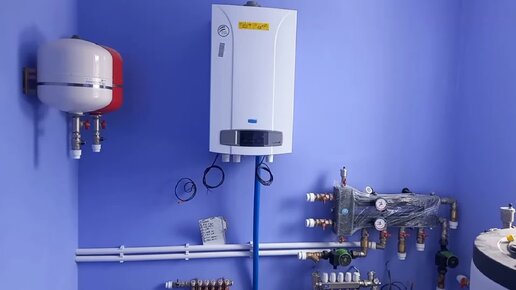 Комбинированная система отопления в небольшом двухэтажном доме. Горячая вода при помощи бойлера косвенного нагрева.