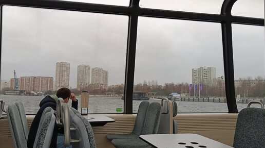 Речной электротранспорт. Проехал от причала "ЗИЛ" до причала "Печатники". Пассажиров совсем нет. Почти всю дорогу я был на судне один.