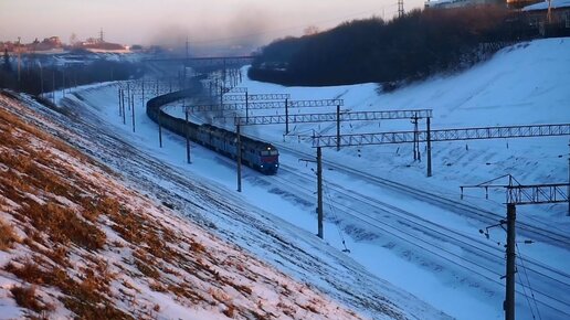 Тепловозы 2ТЭ116У-0025 и 2ТЭ116У-0076. Двойная тяга на подъёме.