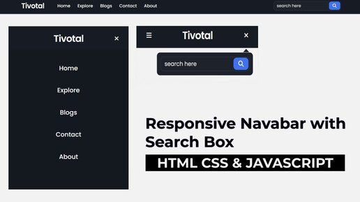 Адаптивное меню навигационной панели с полем поиска в HTML CSS и JavaScript | Responsive Navbar Menu with Search Box in HTML CSS JavaScript