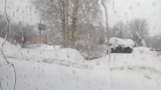 БКМ-321. Летим в гору. Впритирку к сугробам. Вид из окна. Петрозаводск