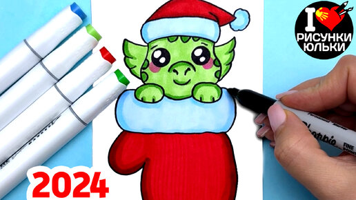 Как нарисовать Дракона Символ 2024 Года в Варежке / Дракон Рисунок / Рисунки Юльки на Год Дракона