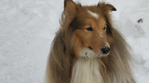 Зимние меха с палочкой на прогулке