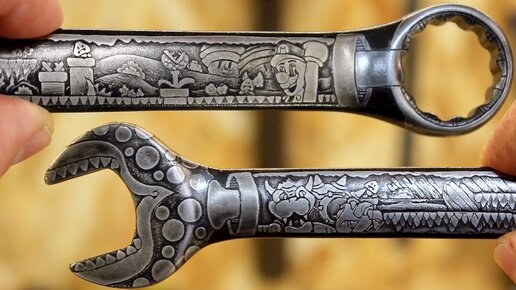 Простая технология. Уникальный гаечный ключ для братьев Марио. Мельчайший рисунок на металле