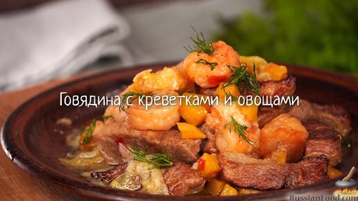 Мясо с морепродуктами — это вкусно! Говядина с креветками и овощами