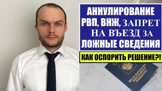 АННУЛИРОВАНИЕ РВП, ВНЖ, ЗАПРЕТ НА ВЪЕЗД ЗА ЛОЖНЫЕ СВЕДЕНИЯ. КАК ОСПОРИТЬ?! Юрист
