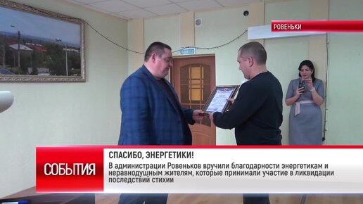 ТК "Родной". В администрации Ровеньков вручили благодарности энергетикам и неравнодушным жителям