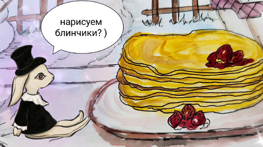 Как нарисовать блины на тарелке?