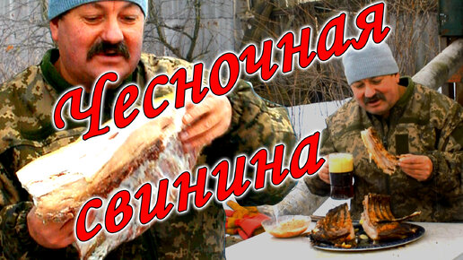 На Новый год приготовил большой кусок чесночной свинины