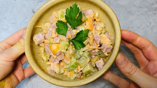 Салат «Немецкий» с ветчиной и фасолью - пикантный салат на праздничный и повседневный стол
