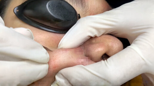 Мясистые ПРЫЩИ лезут из жирной волосатой кожи (делаем "чистку лица" женщине)