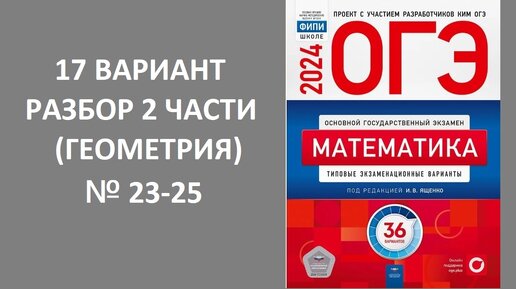 Вариант № 17 ОГЭ 2024 по математике из сборника Ященко 36 вариантов. Разбор 2 части (геометрия). № 23-25. Готовимся вместе к ОГЭ 2024!!!