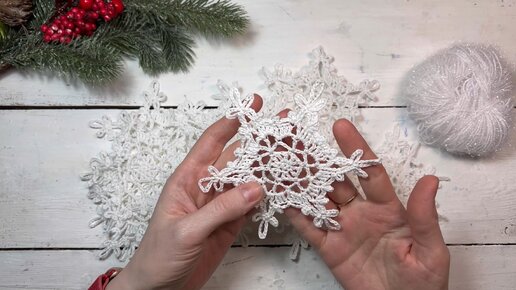 Новогодний декор своими руками / Венок из вязаных крючком снежинок