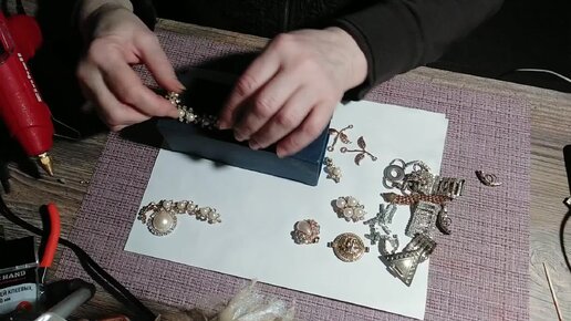 Декор коробочки ненужной бижутерией.Красота - страшная сила!
