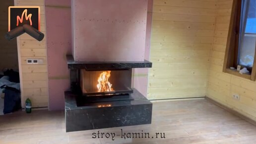 Красивый подарок к Новому Году - современный трехсторонний камин с топкой АСТОВ П3С 8457 в черном мраморе