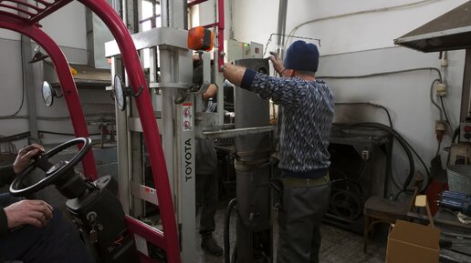 Гидравлический пресс для штамповки шкворней разбираем для ремонта.