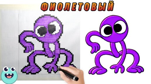 ФИОЛЕТОВЫЙ РАДУЖНЫЙ ДРУГ 🌈 | ПЁРПЛ | Как нарисовать фиолетового друга по клеточкам