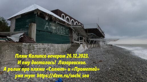 Пляж Калипсо 26.12.2023 и ему досталось! Лазаревское 2023.🌴ЛАЗАРЕВСКОЕ СЕГОДНЯ🌴СОЧИ.