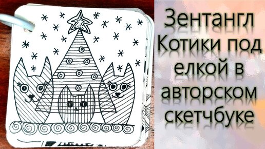 Далее: Зентангл Котик в венке в авторском скетчбуке