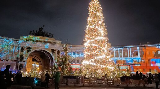 Санкт-Петербург. Ёлка на Дворцовой площади и световая инсталляция