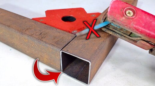 Квадратная труба: трюк с резкой под углом 90 градусов __ резка под углом 45 градусов