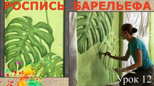 Роспись барельефа Листья монстеры | художник Наталья Боброва