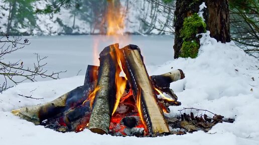 🔥 Музыка огня. Костер на снегу. Белоснежная атмосфера ❄️