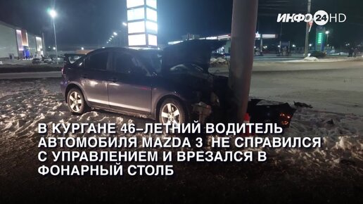 В Кургане 46-летний водитель автомобиля MAZDA 3 не справился с управлением и врезался в фонарный столб. (2023-12-27)