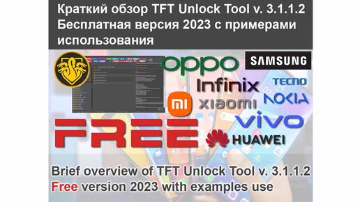 TFT Unlock Tool v. 3.1.1.2 БЕСПЛАТНАЯ программа для сервисного обслуживания. Разблокировка FRP, Mi Account, Код блокировки ect ряда брэндов