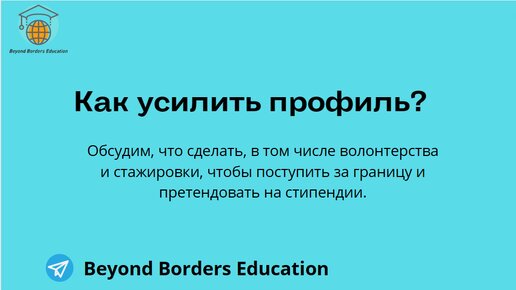 Как усилить профиль для поступление и получения стипендии в зарубежные университеты. Запись вебинара
