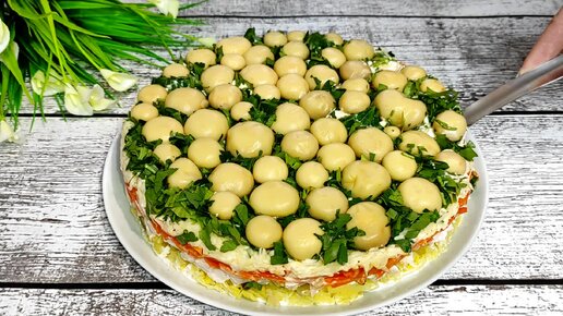 Необыкновенно нежный салат " ГРИБНАЯ ПОЛЯНА" на праздничный стол. Гости его просто обожают.